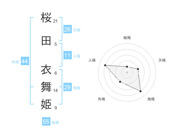 桜田 衣舞姫さんの総格は55画の1点