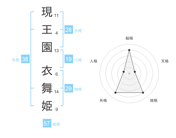 現王園 衣舞姫さんを姓名の画数から五運を鑑定