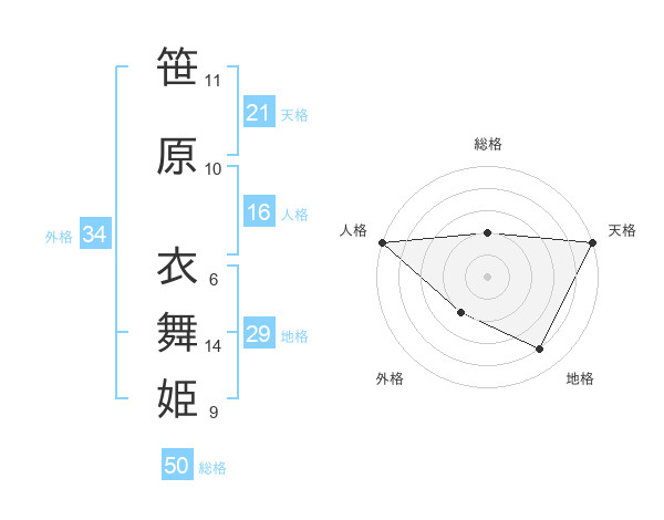 笹原 衣舞姫さんを姓名の画数から五運を鑑定