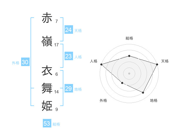 赤嶺 衣舞姫さんの天格は24画の5点!