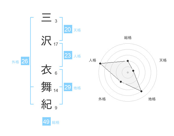 三沢 衣舞紀さんの総格は49画の2点