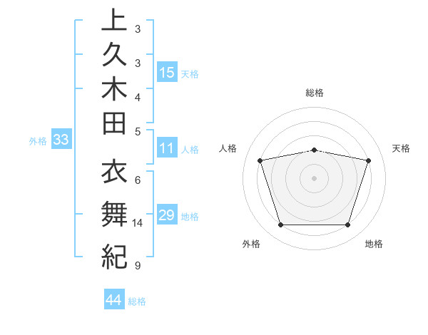 上久木田 衣舞紀さんを姓名の画数から五運を鑑定