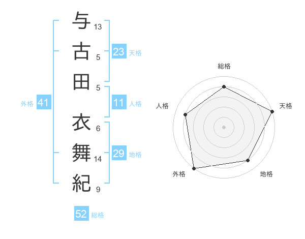 与古田 衣舞紀さんを姓名の画数から五運を鑑定