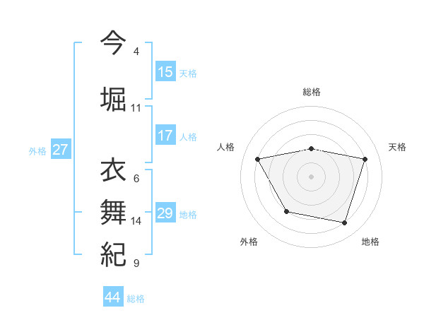 今堀 衣舞紀さんを姓名の画数から五運を鑑定
