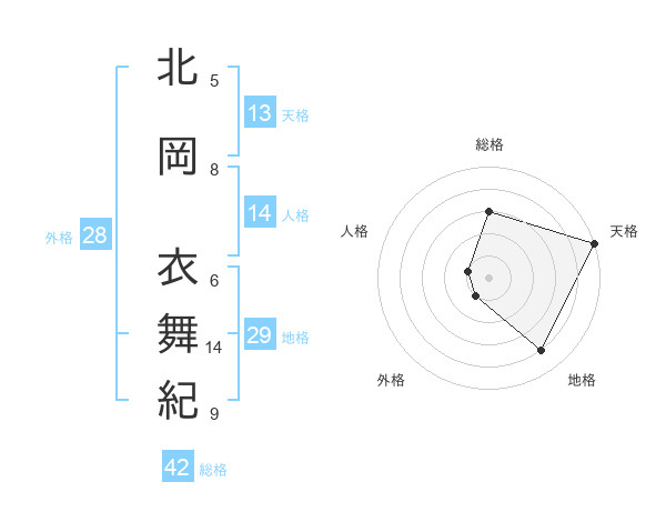 北岡 衣舞紀さんを姓名の画数から五運を鑑定
