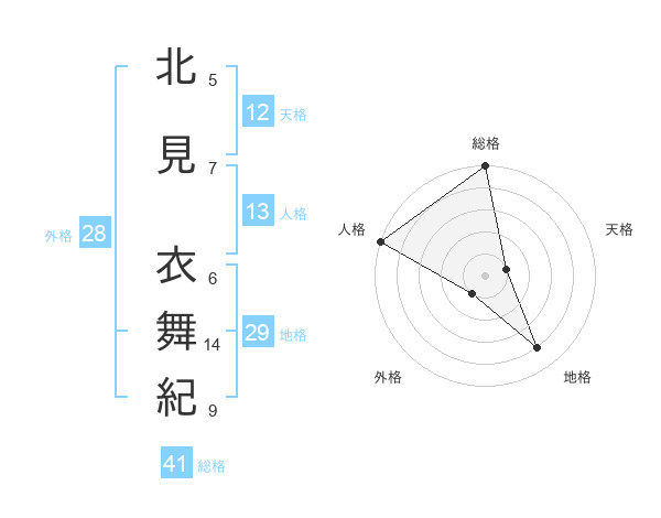 北見 衣舞紀さんを姓名の画数から五運を鑑定