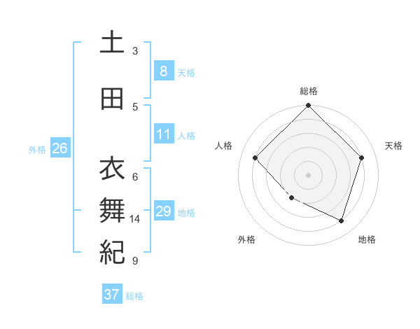 土田 衣舞紀さんの総格は37画の5点!