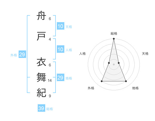 舟戸 衣舞紀さんの総格は39画の5点!