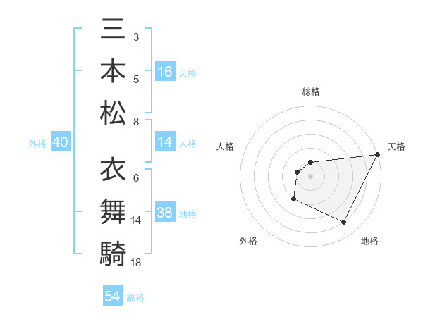 三本松 衣舞騎さんの総格は54画の1点!