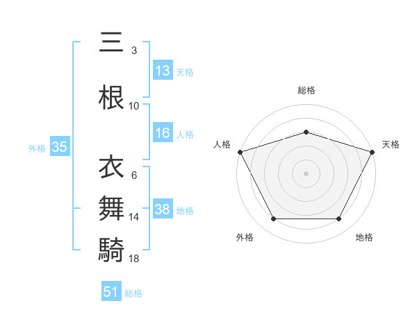三根 衣舞騎さんの総格は51画の3点!