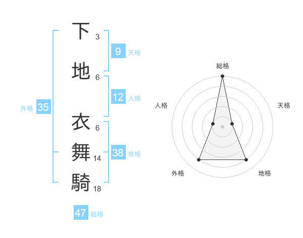下地 衣舞騎さんの総格は47画の5点!