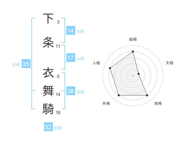 下条 衣舞騎さんの総格は52画の4点!