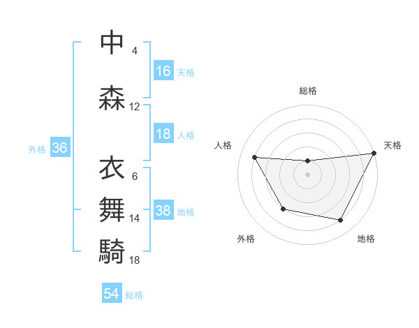 中森 衣舞騎さんの天格は16画の5点!