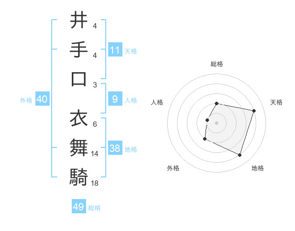 井手口 衣舞騎さんを姓名の画数から五運を鑑定