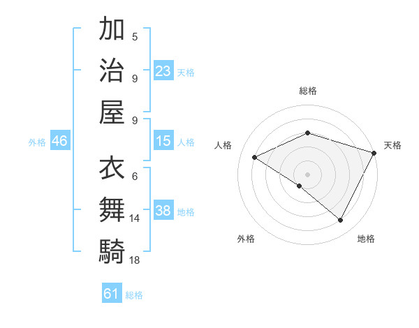 加治屋 衣舞騎さんを姓名の画数から五運を鑑定