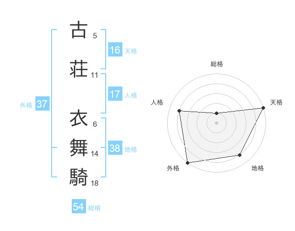 古荘 衣舞騎さんを姓名の画数から五運を鑑定