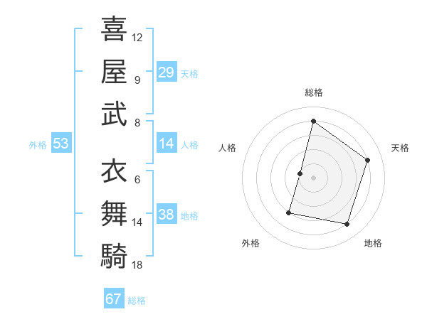 喜屋武 衣舞騎さんの外格は53画の3点!