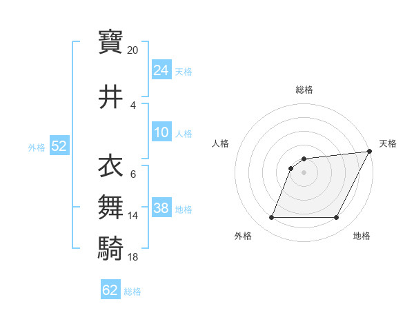 寶井 衣舞騎さんの総格は62画の1点!