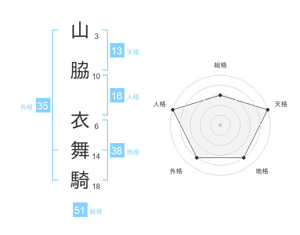 山脇 衣舞騎さんを姓名の画数から五運を鑑定