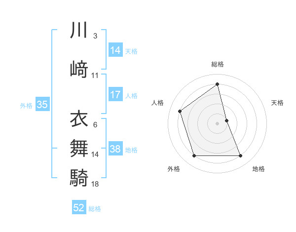 川﨑 衣舞騎さんを姓名の画数から五運を鑑定