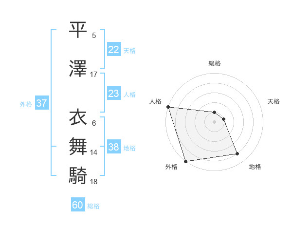 平澤 衣舞騎さんを姓名の画数から五運を鑑定