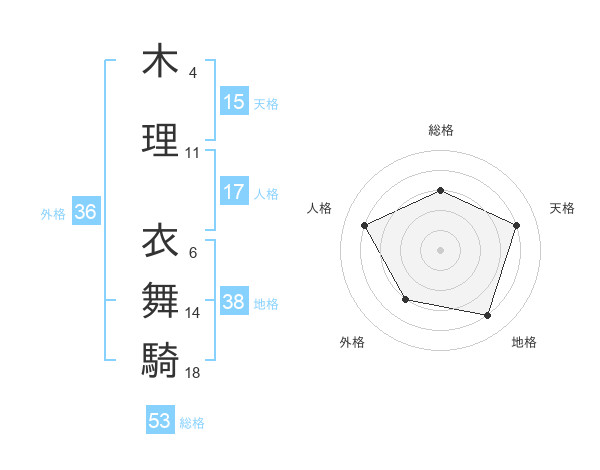 木理 衣舞騎さんを姓名の画数から五運を鑑定