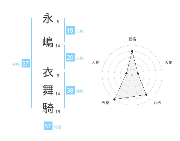 永嶋 衣舞騎さんの外格は37画の5点!