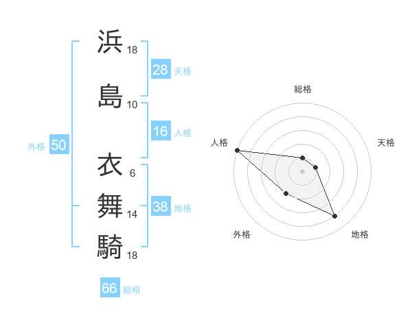 浜島 衣舞騎さんを姓名の画数から五運を鑑定