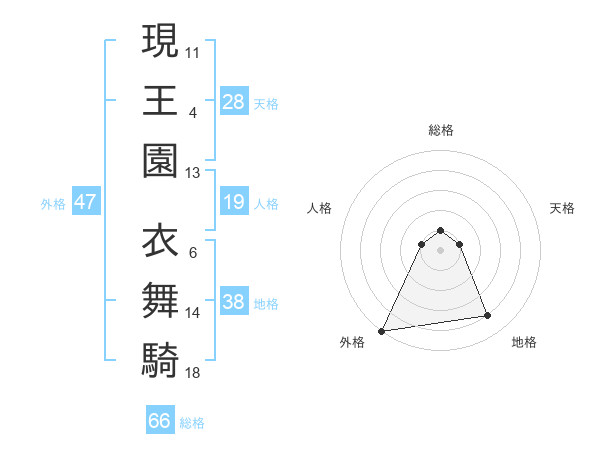 現王園 衣舞騎さんを姓名の画数から五運を鑑定