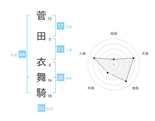 菅田 衣舞騎さんを姓名の画数から五運を鑑定