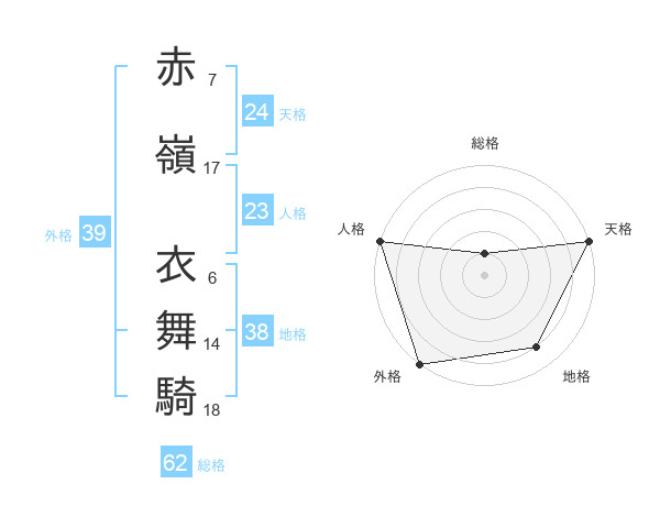 赤嶺 衣舞騎さんの総格は62画の1点!