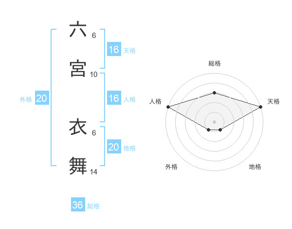 六宮 衣舞さんを姓名の画数から五運を鑑定