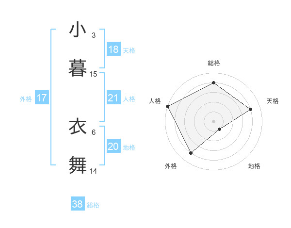 小暮 衣舞さんの天格は18画の4点!
