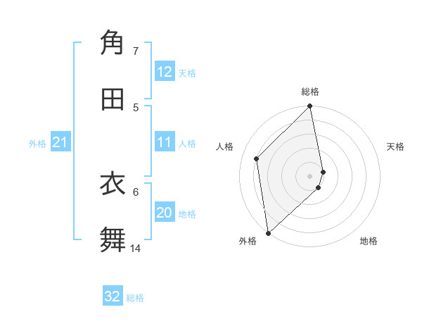 角田 衣舞さんを姓名の画数から五運を鑑定