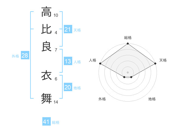 高比良 衣舞さんを姓名の画数から五運を鑑定