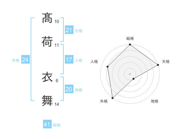 髙荷 衣舞さんを姓名の画数から五運を鑑定
