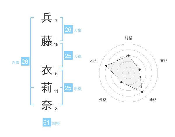 兵藤 衣莉奈さんを姓名の画数から五運を鑑定