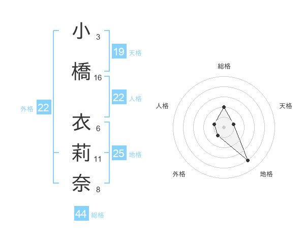 小橋 衣莉奈さんの総格は44画の2点