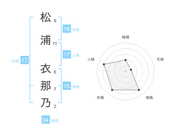 松浦 衣那乃さんを姓名の画数から五運を鑑定