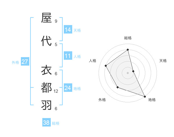 屋代 衣都羽さんを姓名の画数から五運を鑑定