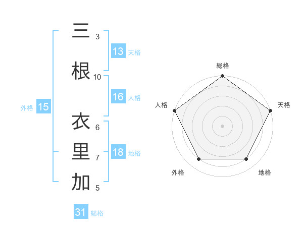 三根 衣里加さんを姓名の画数から五運を鑑定