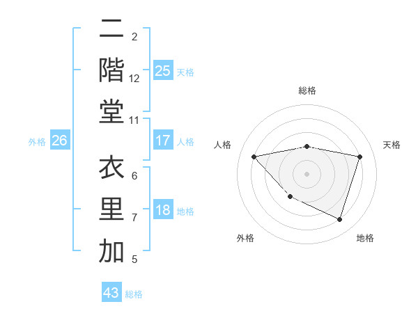 二階堂 衣里加さんを姓名の画数から五運を鑑定