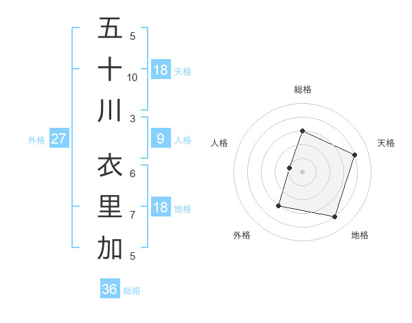 五十川 衣里加さんを姓名の画数から五運を鑑定