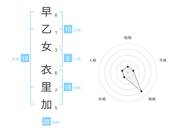 早乙女 衣里加さんを姓名の画数から五運を鑑定