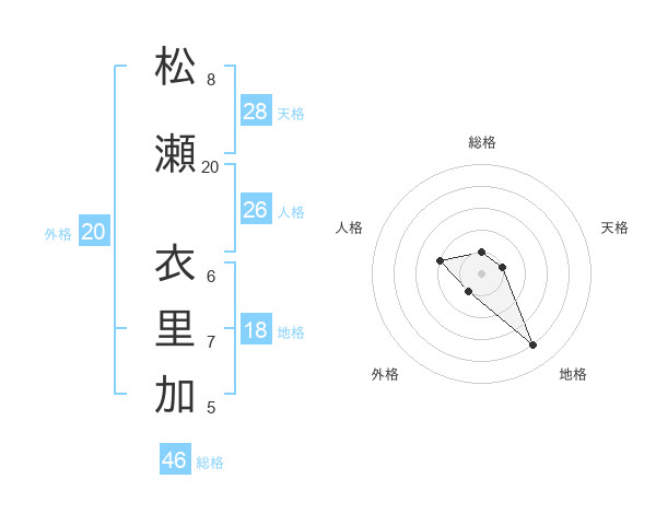 松瀬 衣里加さんを姓名の画数から五運を鑑定