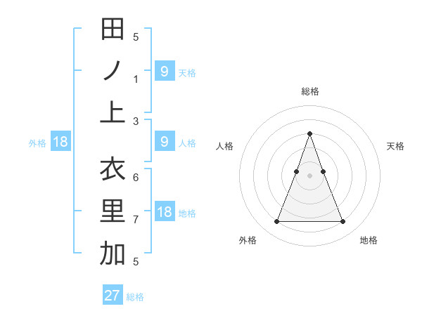 田ノ上 衣里加さんを姓名の画数から五運を鑑定
