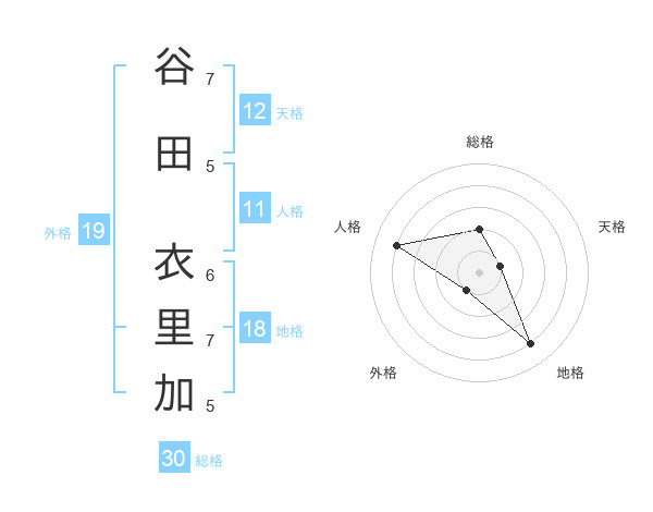 谷田 衣里加さんを姓名の画数から五運を鑑定