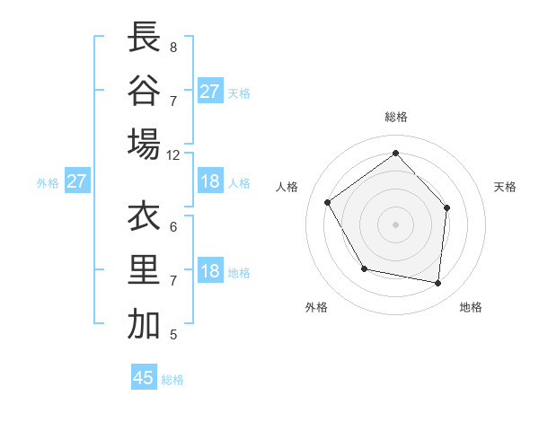 長谷場 衣里加さんの総格は45画の4点