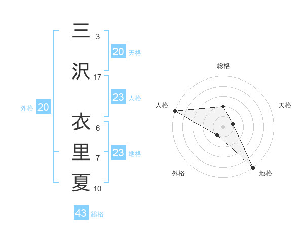 三沢 衣里夏さんを姓名の画数から五運を鑑定