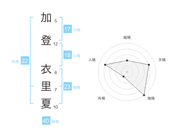 加登 衣里夏さんを姓名の画数から五運を鑑定